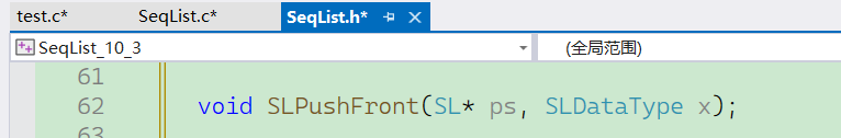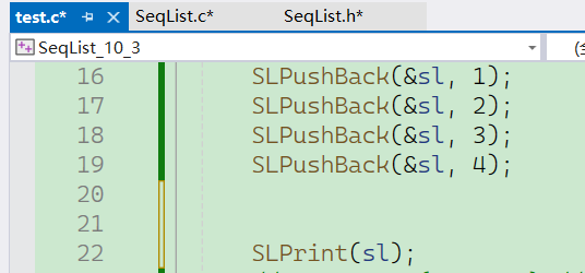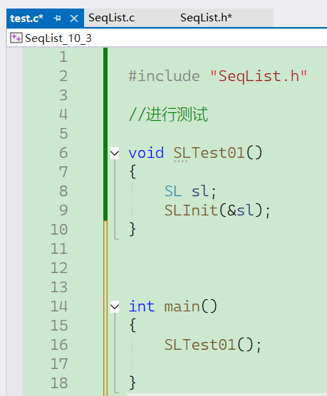 - 定义一个顺序表变量,将它的地址传址调用给源文件中的SLInit函数。