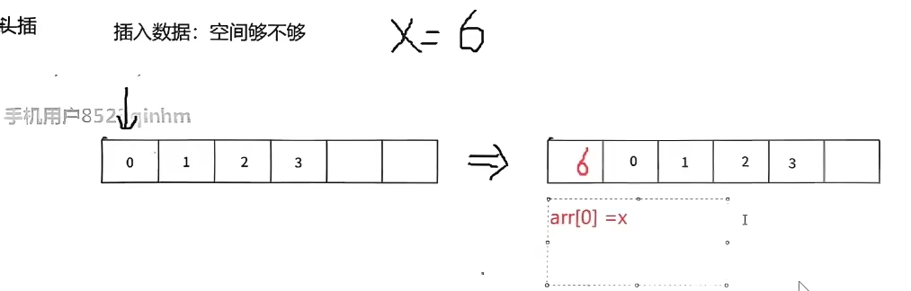 - arr[0]空出来了,现在插入x就可以了。225行。