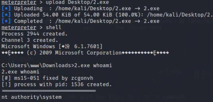 重新再kali中设置一个监听,通过提权之后去运行后门文件,这样就获得了一个高权限运行的后门