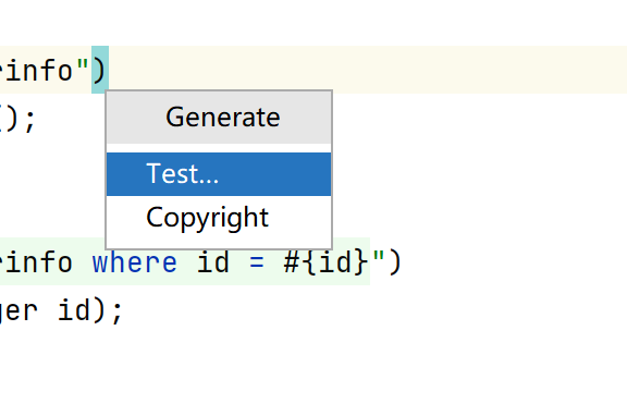 class UserInfoMapperTest {@Autowiredprivate UserInfoMapper userInfoMapper;@Testvoid insert() {UserInfo userInfo = new UserInfo();userInfo.setUsername("zhaoliu");userInfo.setPassword("666666");userInfo.setAge(18);userInfo.setGender(1);System.out.println(userInfoMapper.insert1(userInfo));}@Testvoid insert1() {UserInfo userInfo = new UserInfo();userInfo.setUsername("libai");userInfo.setPassword("000000");userInfo.setAge(15);userInfo.setGender(1);System.out.println("影响行数: " + userInfoMapper.insert(userInfo) + ", id: " + userInfo.getId());}@Testvoid delete() {System.out.println(userInfoMapper.delete(5));}@Testvoid update() {UserInfo userInfo = new UserInfo();userInfo.setPassword("123456");userInfo.setAge(22);userInfo.setGender(2);userInfo.setId(6);System.out.println(userInfoMapper.update(userInfo));}