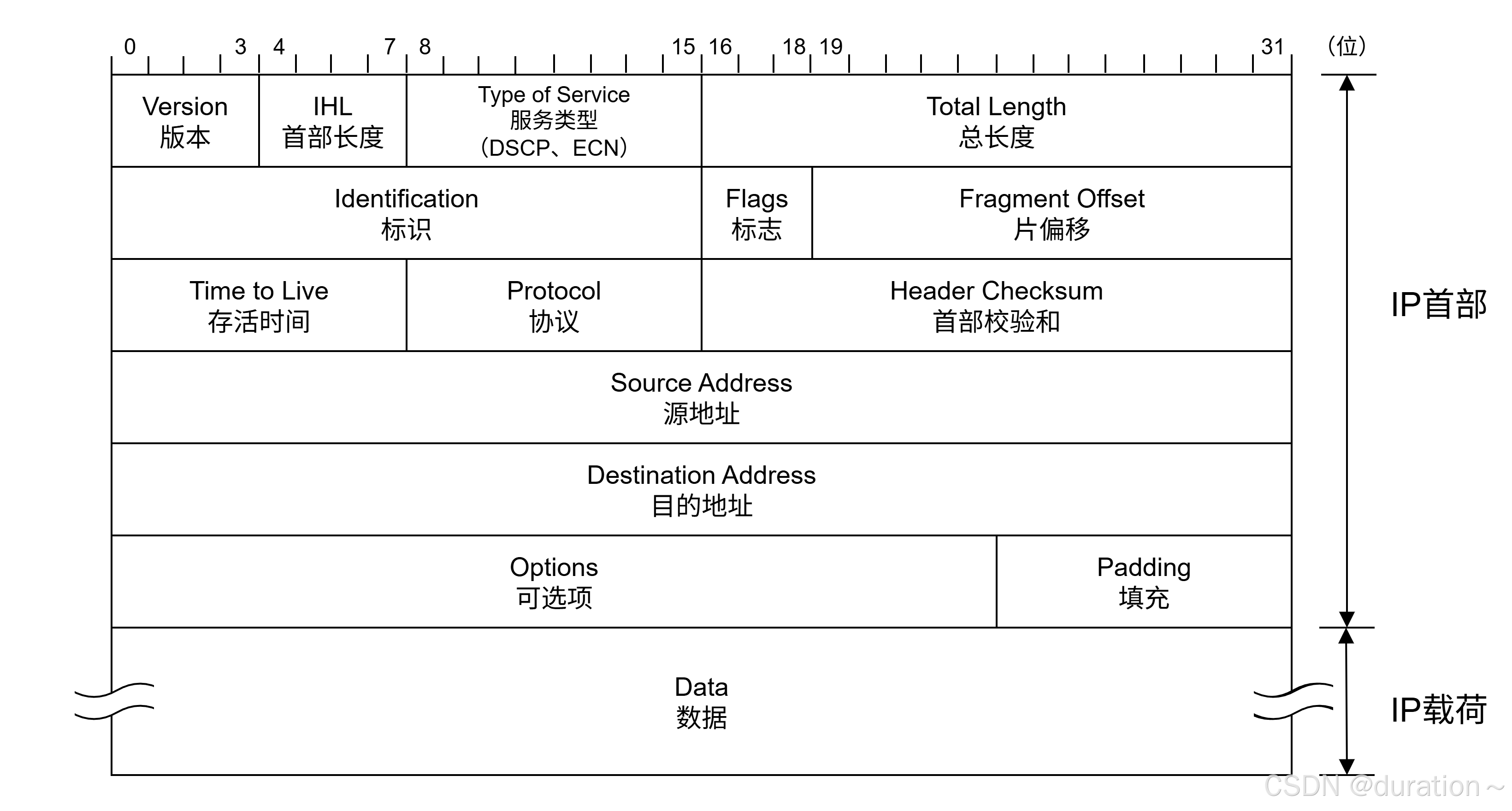 IP 首部结构如下,了解 IP 首部的详细信息即可对 IP 所具有的功能有一个详细的把握。