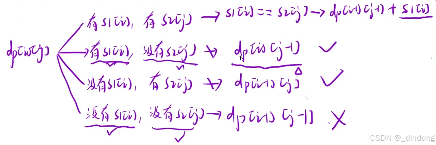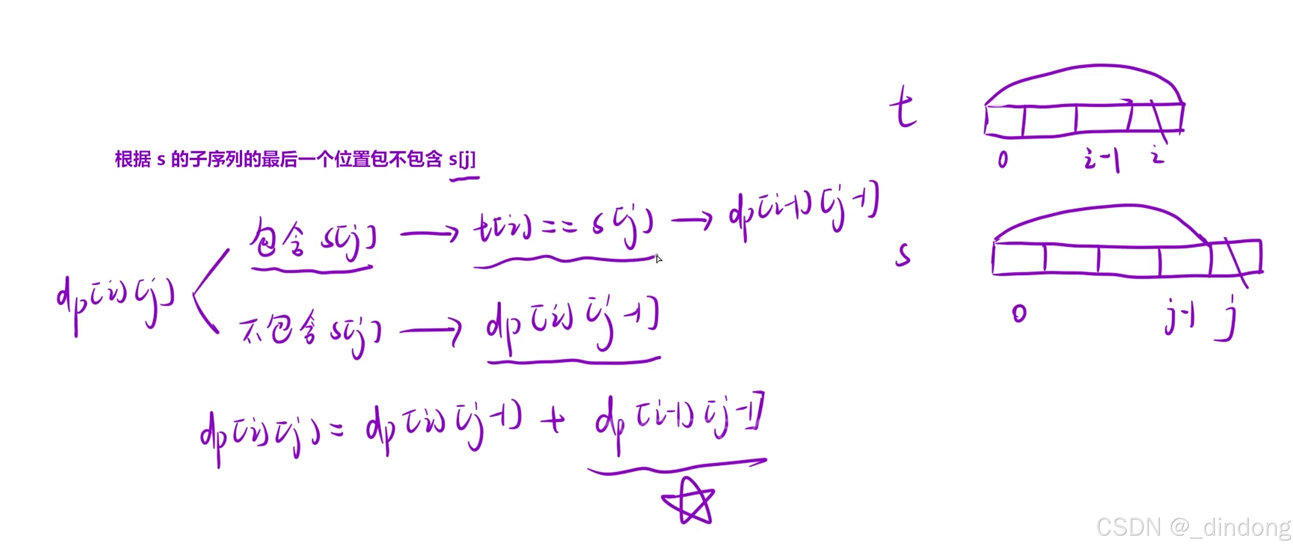 那么依旧是对于s的子序列的最后一个位置展开讨论,考虑包不包括最后的这个位置