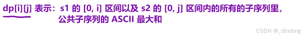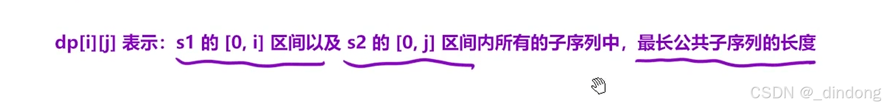 涉及两个s的值进行比对,遍历两边元素是否相等,区间扩展同时实现递推,那么可以i,j表示0~i/j区间内的所有子序列,公共子序列的长度(0~i/j是因为要求的是子序列,因为涉及两个数组的比对,所以创建二维dp表)