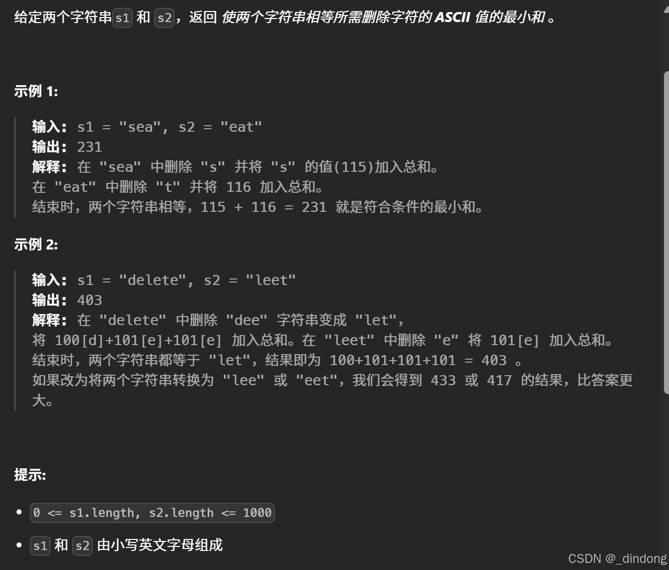 712. 两个字符串的最小ASCII删除和 - 力扣(LeetCode)