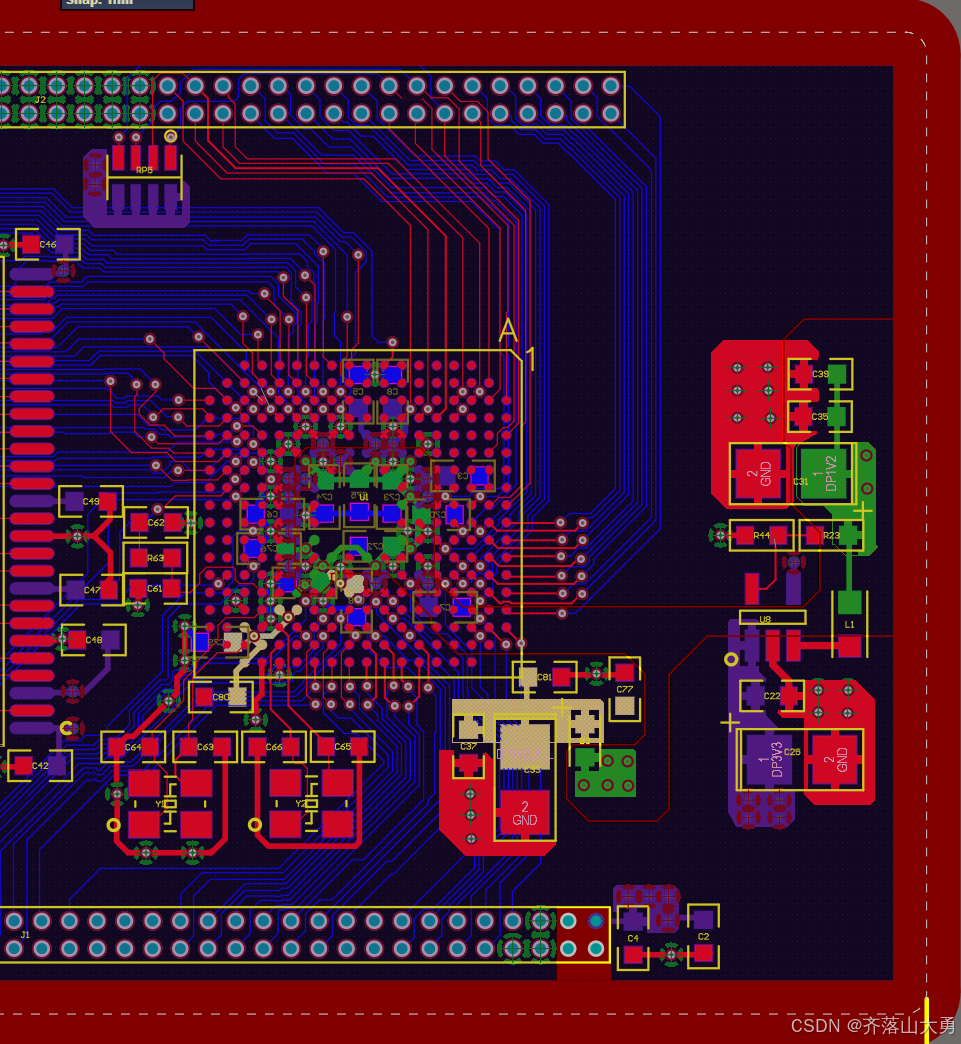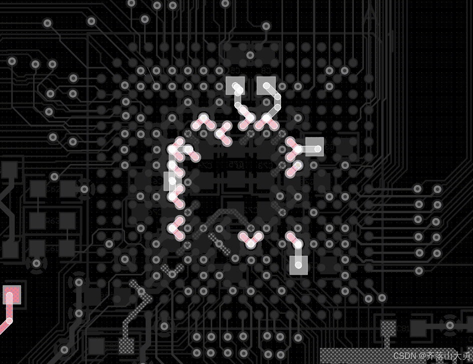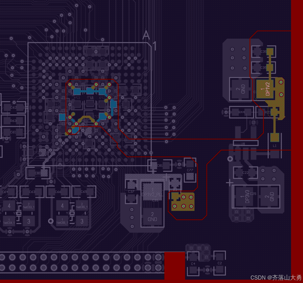 图3 PCB中1.2V的电压信号的焊盘被设置成了绿色