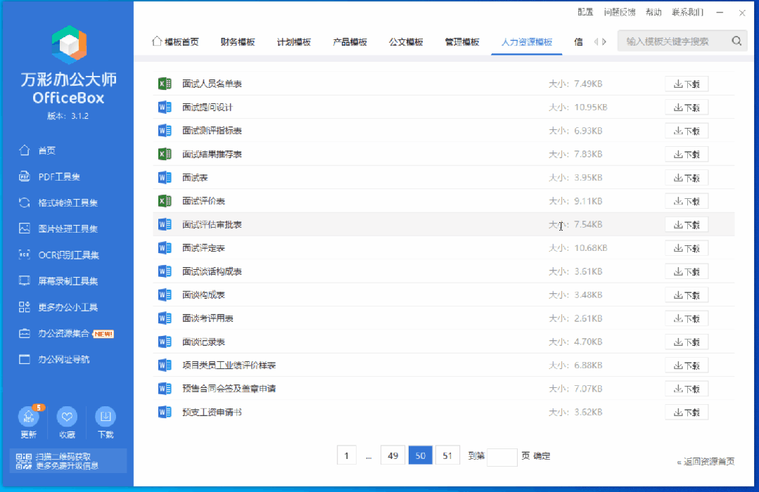 软件还免费提供了上千种 Excel/Word 办公文档模板,涵盖多个方面:财务、人力资源、管理、营销、公文等等,基本所有职场方面的模板都有。