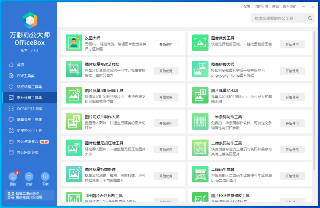 图片处理就相当于一款图片处理工具,甚至还强上几分,拥有图片编辑、图片大小修改、水印的添加、制作二维码、无损压缩图片文件等功能。