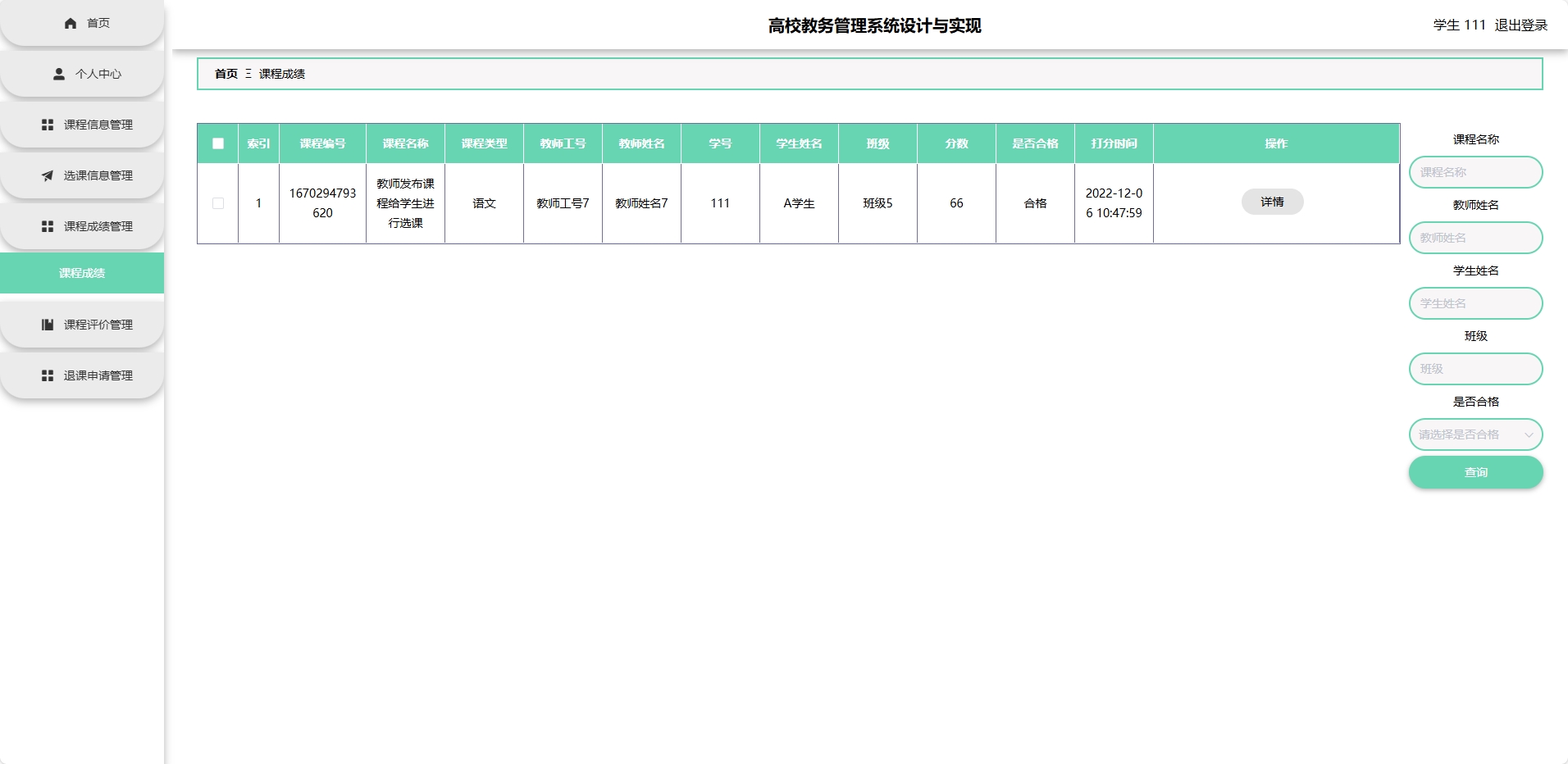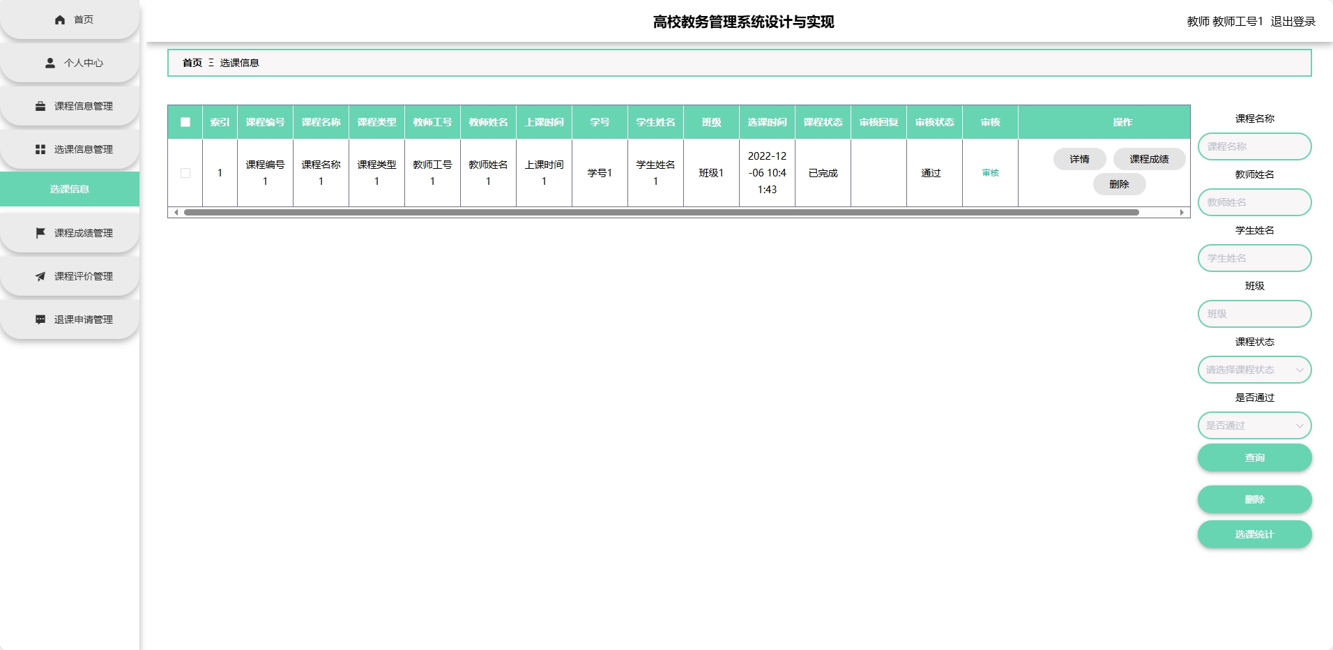 - 学生可通过移动端(Vue适配响应式设计)随时查询课表、选课;教师在线录入成绩,系统自动生成分析报表。