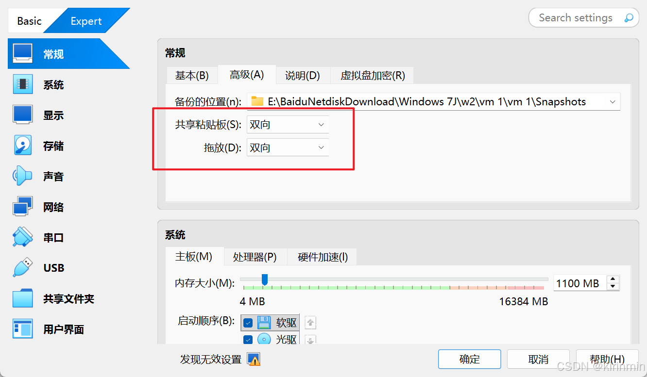 再依次点击常规 (General)–> 高级 (Advanced),后把共享粘贴板 (Shared Clipboard) 和拖放 (Drag’n’Drop) 设置为双向 (Bidirectional)。