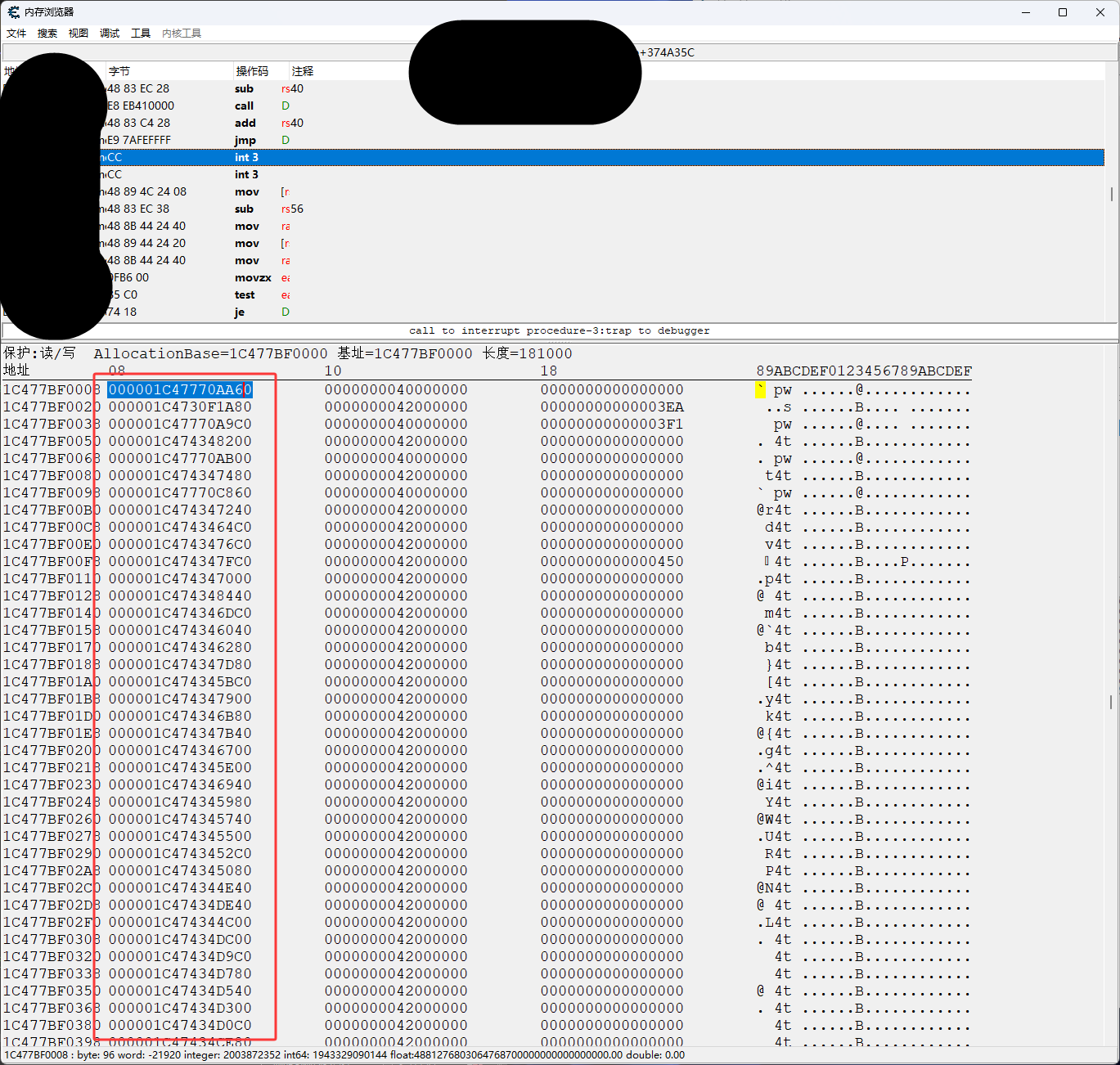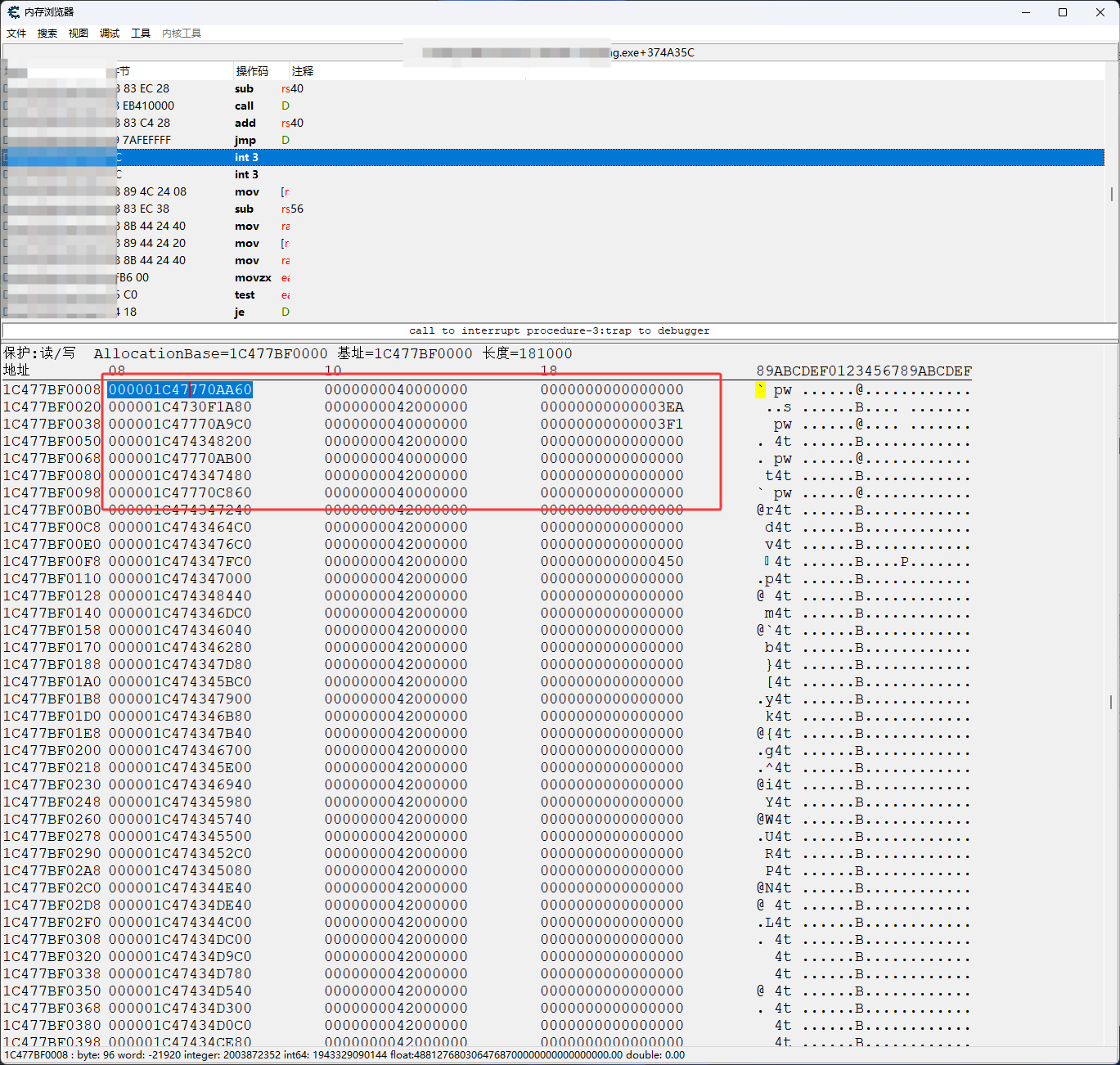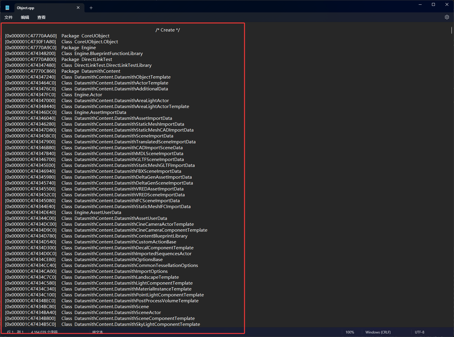 下图红框都是一个UObjectBase结构的内存地址