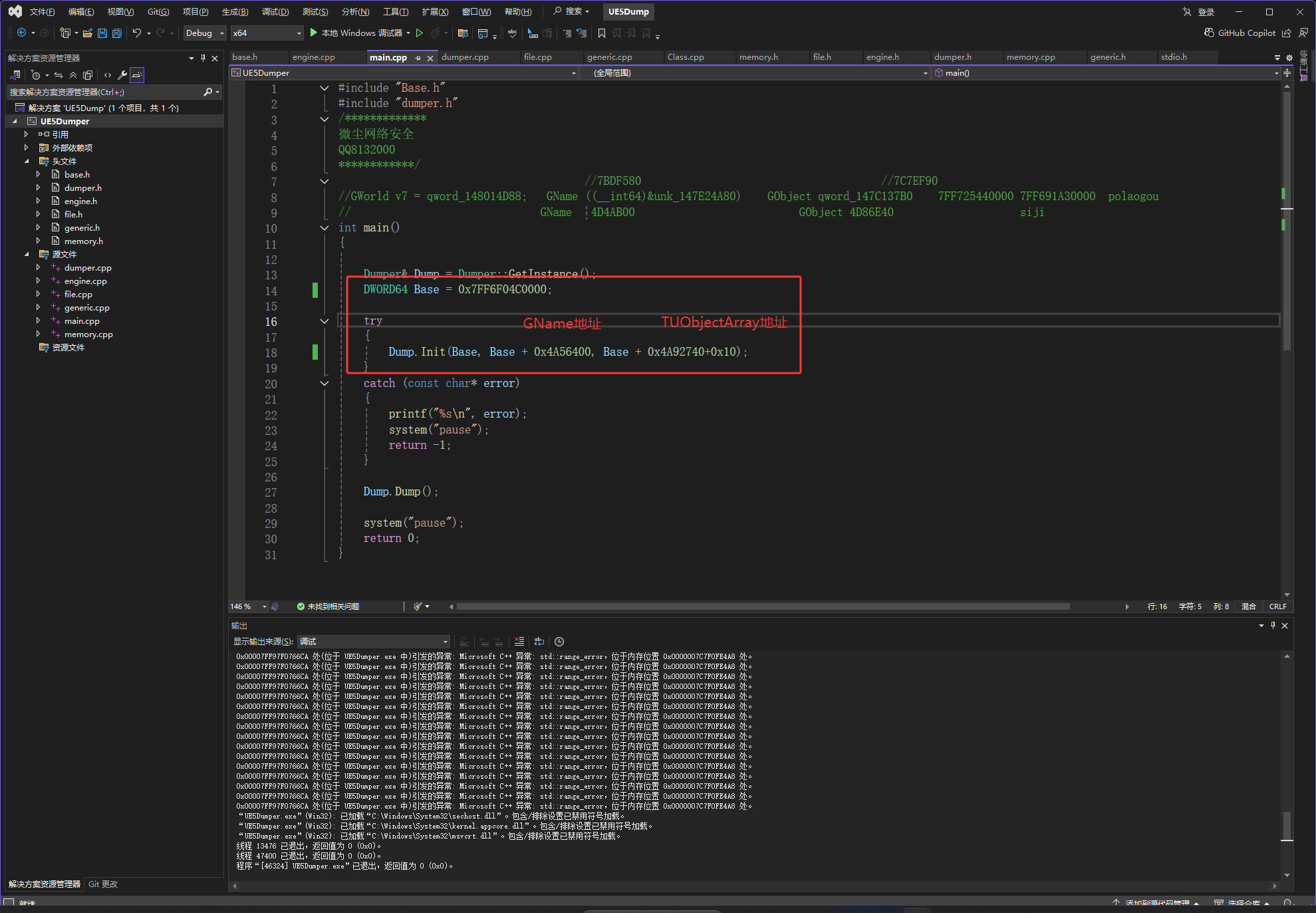 这个东西就是很乱,想不乱只能多写多看,有一个dump代码是用来把游戏中的对象、函数、名字、内存中的地址保存到硬盘上的,上方的不理解也没事都是些理论,实际上用起来并没有那么多事