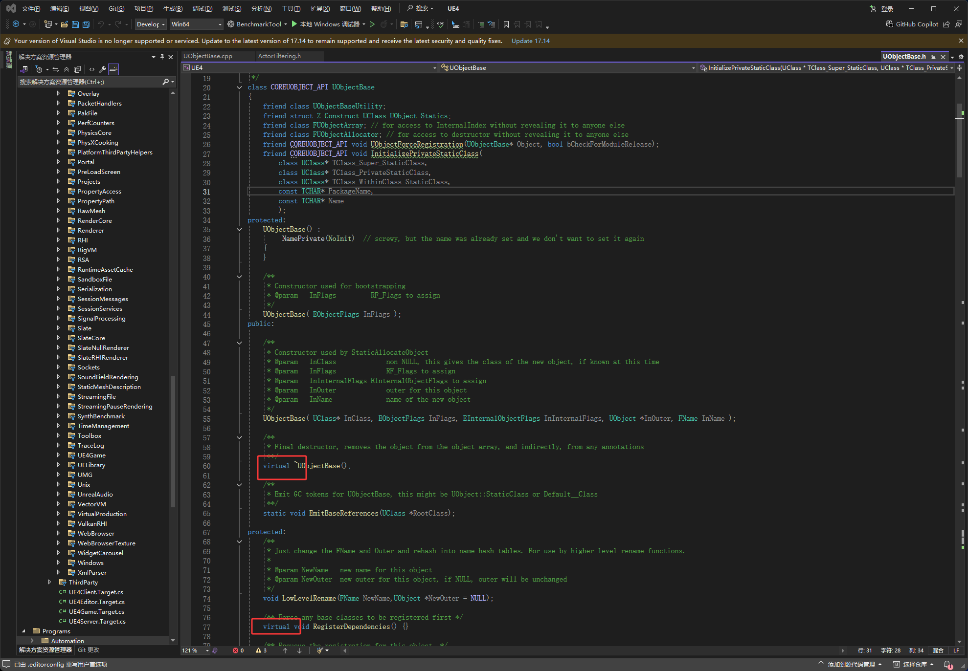 UObjectBase里面有虚函数
