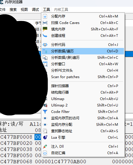 然后如下图选择工具里的分析数据/遍历
