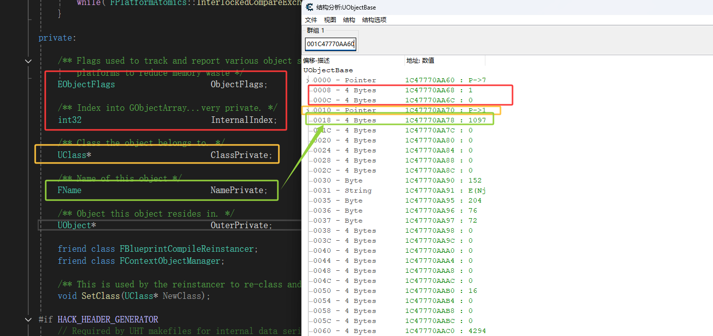 本次来保存游戏中的ue对象,主要需要的东西是下图红框UObjectBase里面的变量
