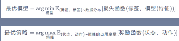 这两个公式分别对应监督学习中最优模型的求解和强化学习中最优策略的求解,核心是从“损失最小化”和“奖励最大化”两个角度,定义如何找到最理想的学习目标(模型或策略)。