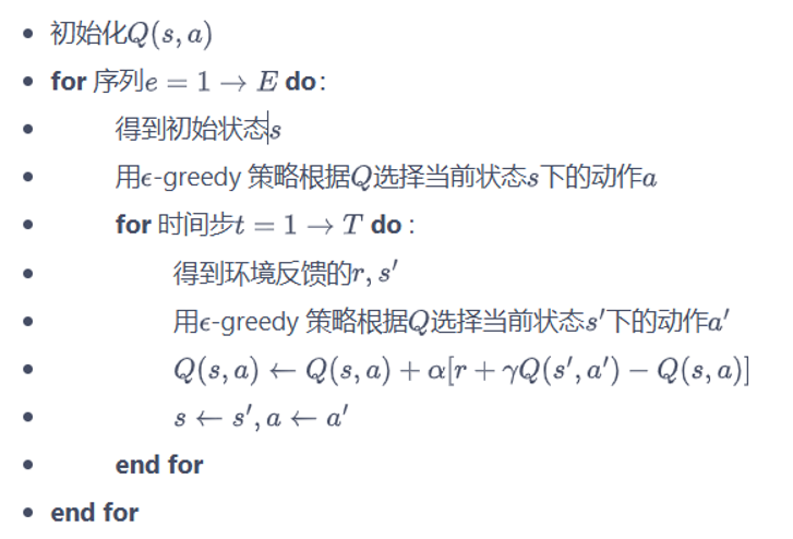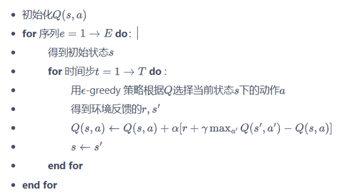 - 形成循环:贪婪算法根据动作价值选取动作来和环境交互,再根据得到的数据用时序差分算法更新动作价值估计