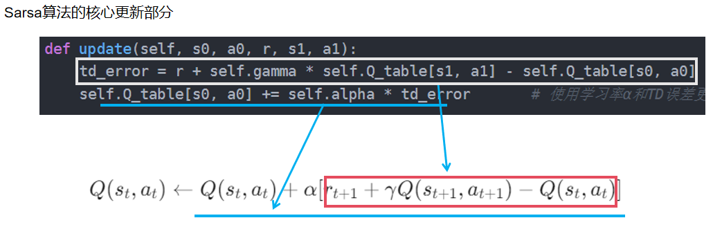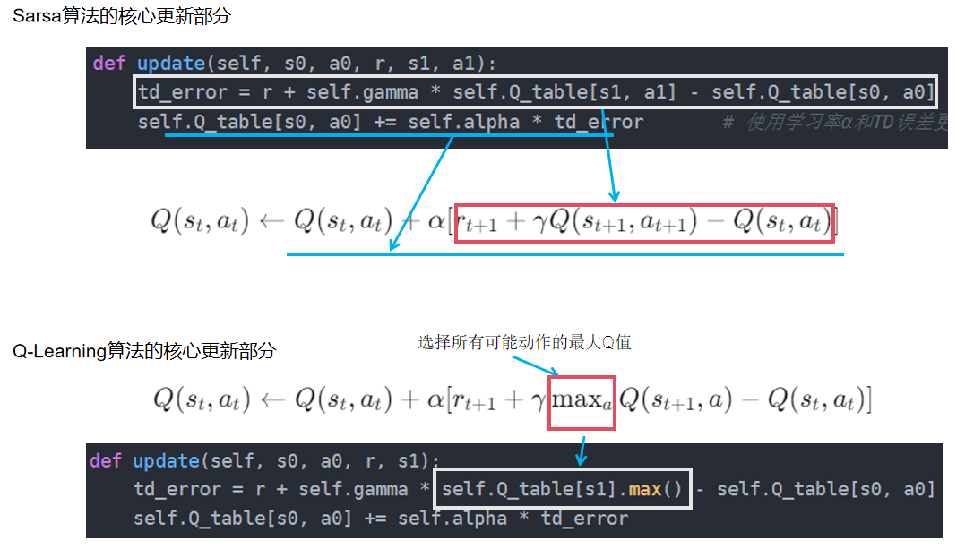 换句话说:sarsa是一种同步更新策略,而Q-Learning是一种异步更新策略。