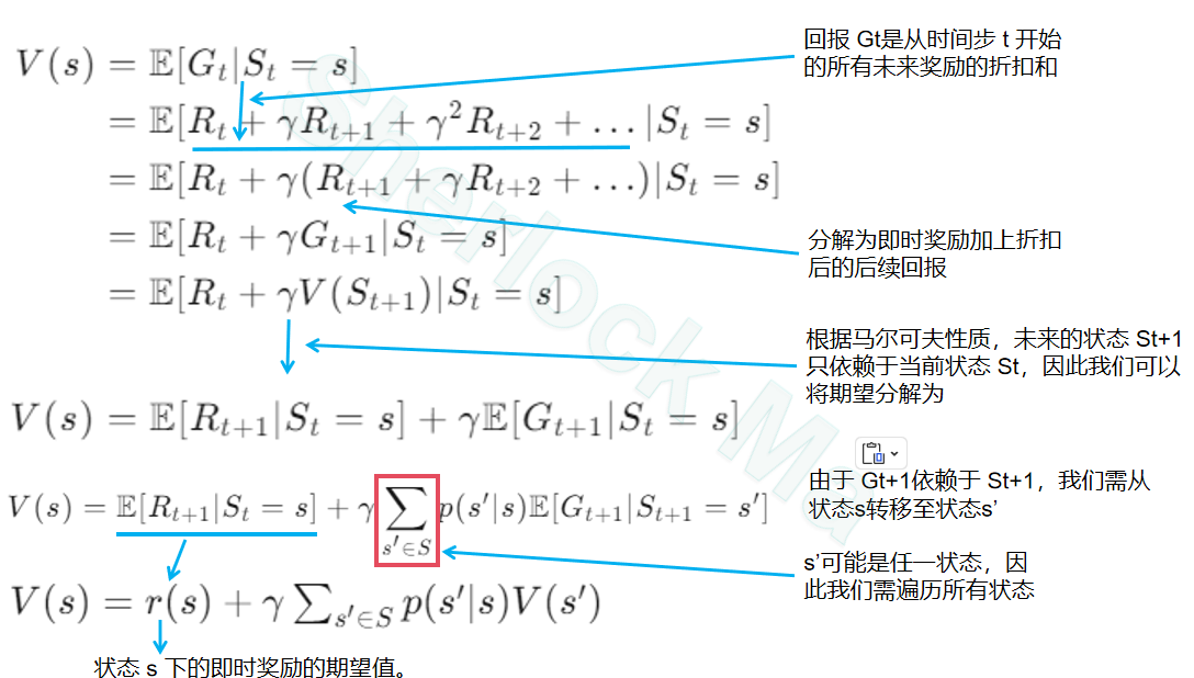 将上面式子完整展开可得其贝尔曼方程为: