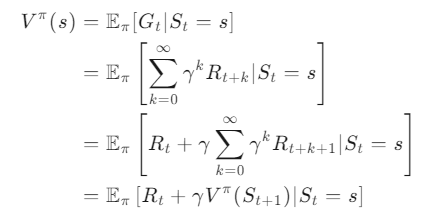 一个状态的价值是它的期望回报,那么一个很直观的想法就是用策略在环境中采样很多条序列,计算从这个状态出发的回报再求其期望就可以了,公式如下: