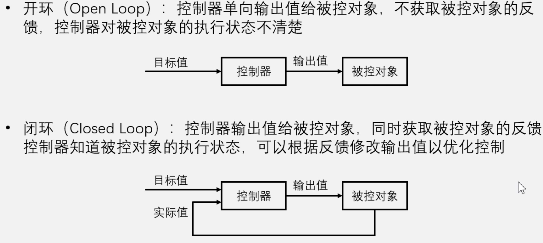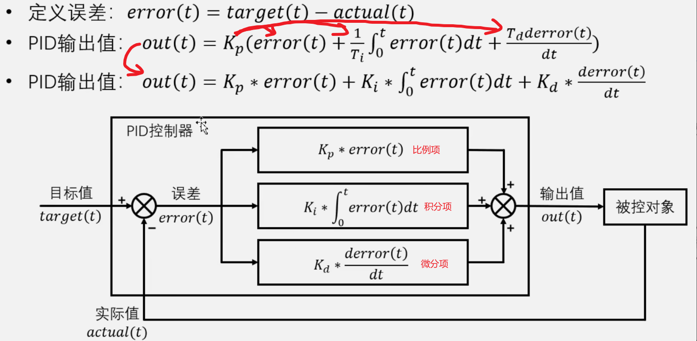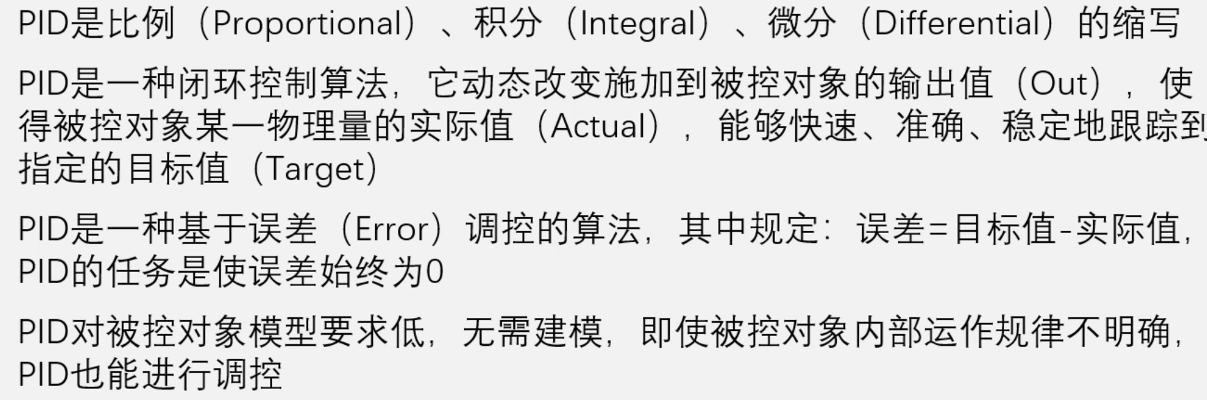 如果被控对象是电机,则目标值是转速,输出值是PWM,实际值电机通过编码器测速返回的速度值;