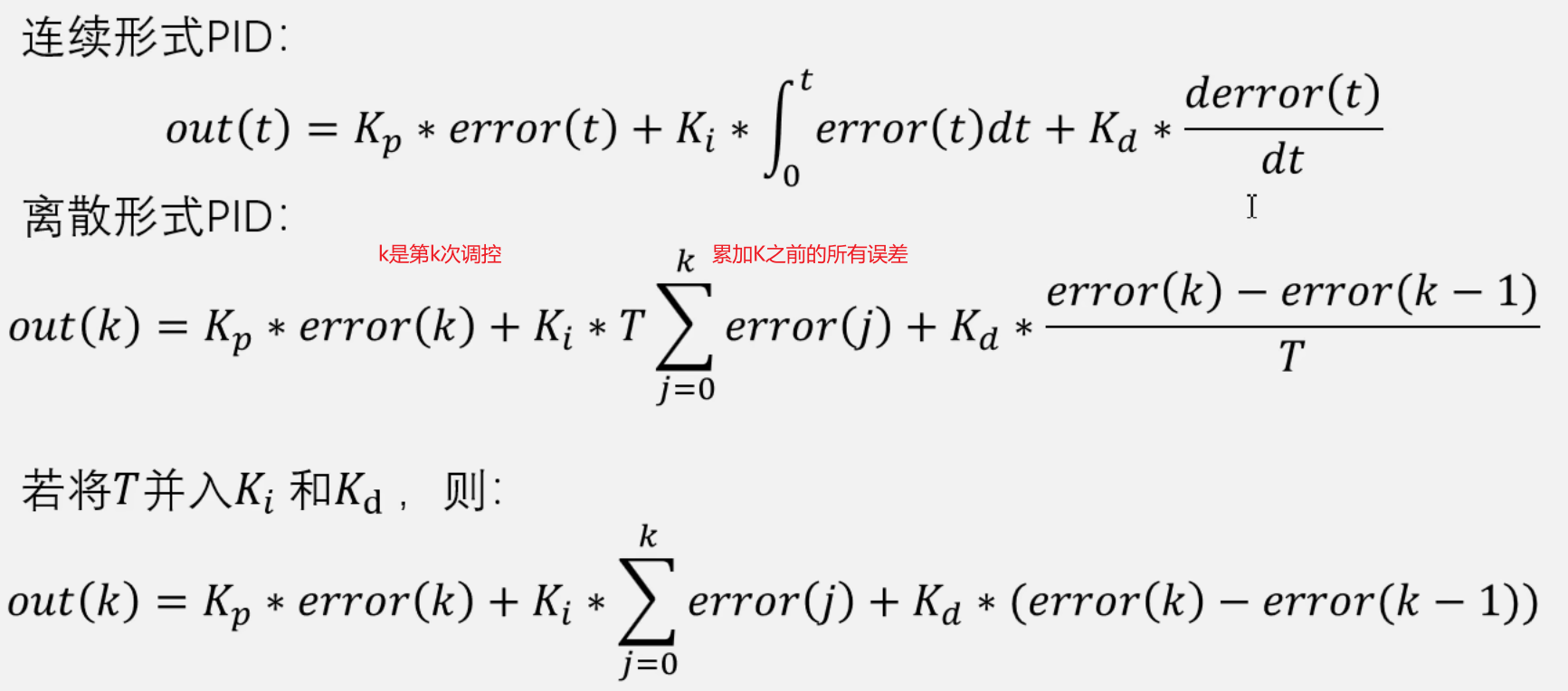 调控周期T的长短要根据被控对象和传感器或者其他情况而定,电机,飞行器,平衡车这些就要调控快一点,但是也不可以无限快,比如MPU6050是5ms采集一次数据,T是1ms没有意义。