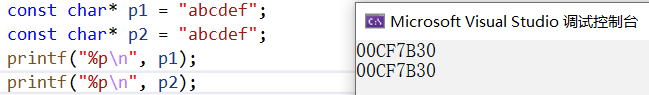 //这里的"abcdef"是一个常量字符串,是存储在代码段(常量区)中的