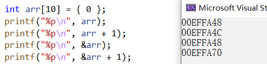 实际上:&arr是整个数组的地址,而不是数组首元素的地址。这个例子中&arr的类型是int(*)[10],是一种数组指针类型。&arr和&arr+1的差值是40,跳过的是整个数组的大小。