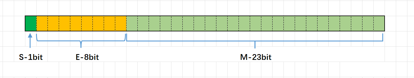 - 对于32位的浮点数,最⾼的1位存储符号位S,接着的8位存储指数E,剩下的23位存储有效数字M