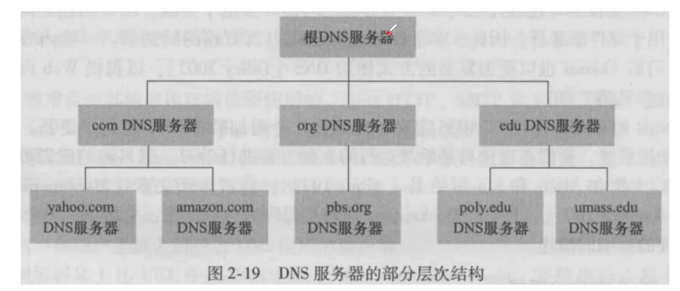 为了处理扩展性问题,DNS使用了大量的DNS服务器,它们以层次方式组织,大致有三种类型的DNS服务器:根DNS服务器、顶级域(Top-Level Domain,TLD)DNS服务器和权威DNS服务器。