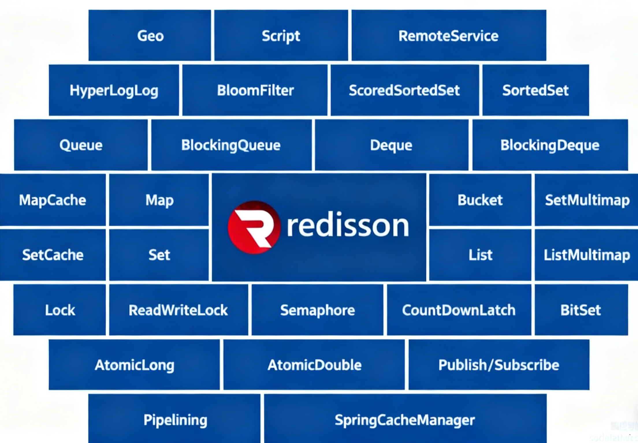 1. 丰富的分布式对象:提供了分布式集合(如 Map、List、Set)、分布式锁(RLock)、限流器(RRateLimiter)、信号量(RSemaphore)等,简化分布式开发。