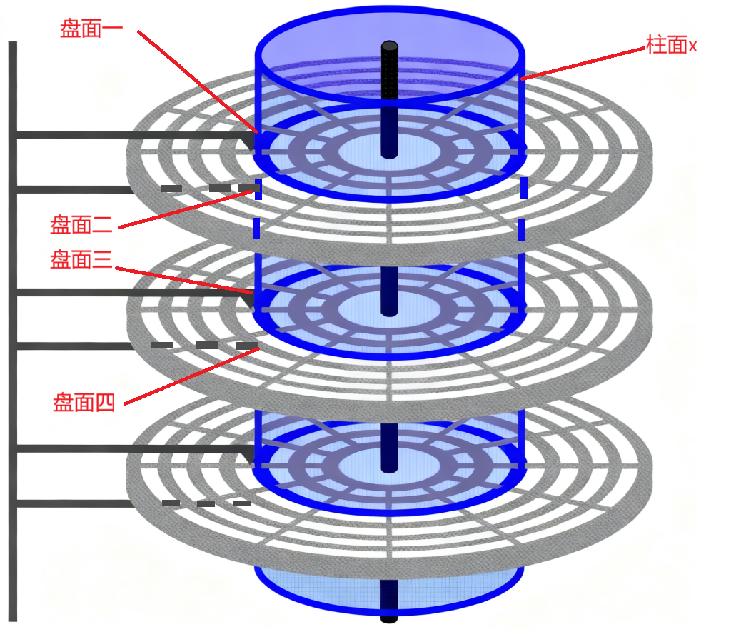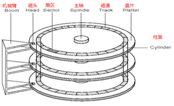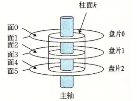 柱面 在所有盘片上,相同半径的磁道在垂直方向上构成的抽象圆柱面。