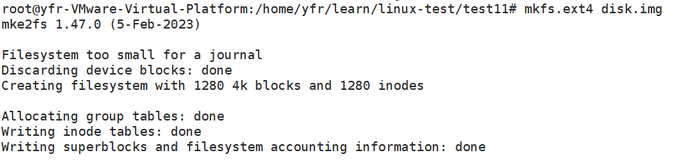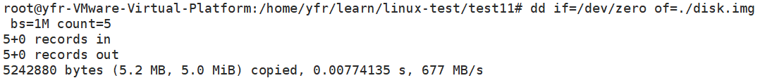 这条命令使用 dd工具,创建了一个5M充满空字符的文件disk.img,我们把这个文件当做一个分区。