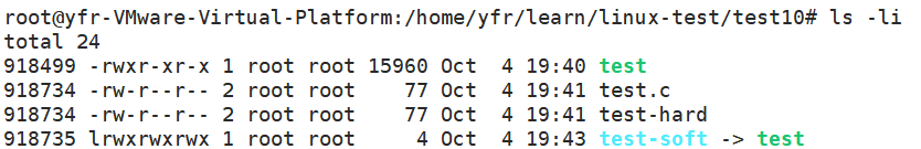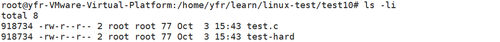 第一项就是文件的inode号,可以看到硬链接和源文件的inode号是一样的,说明他们指向的是同一个inode。所以硬链接的存在可以让多个不同的文件名指向磁盘上的同一份文件数据。
