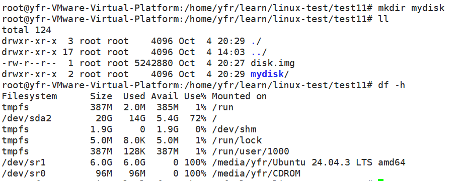 创建一个空目录,再使用 df -h 命令查看可用的分区,现在我们建立的分区还不能使用,所以我们的分区没有列出来
