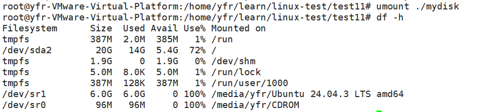 卸载我们建立的分区: