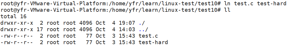 建立test.c文件的硬链接: