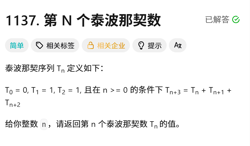 1. 第n个泰波那契数