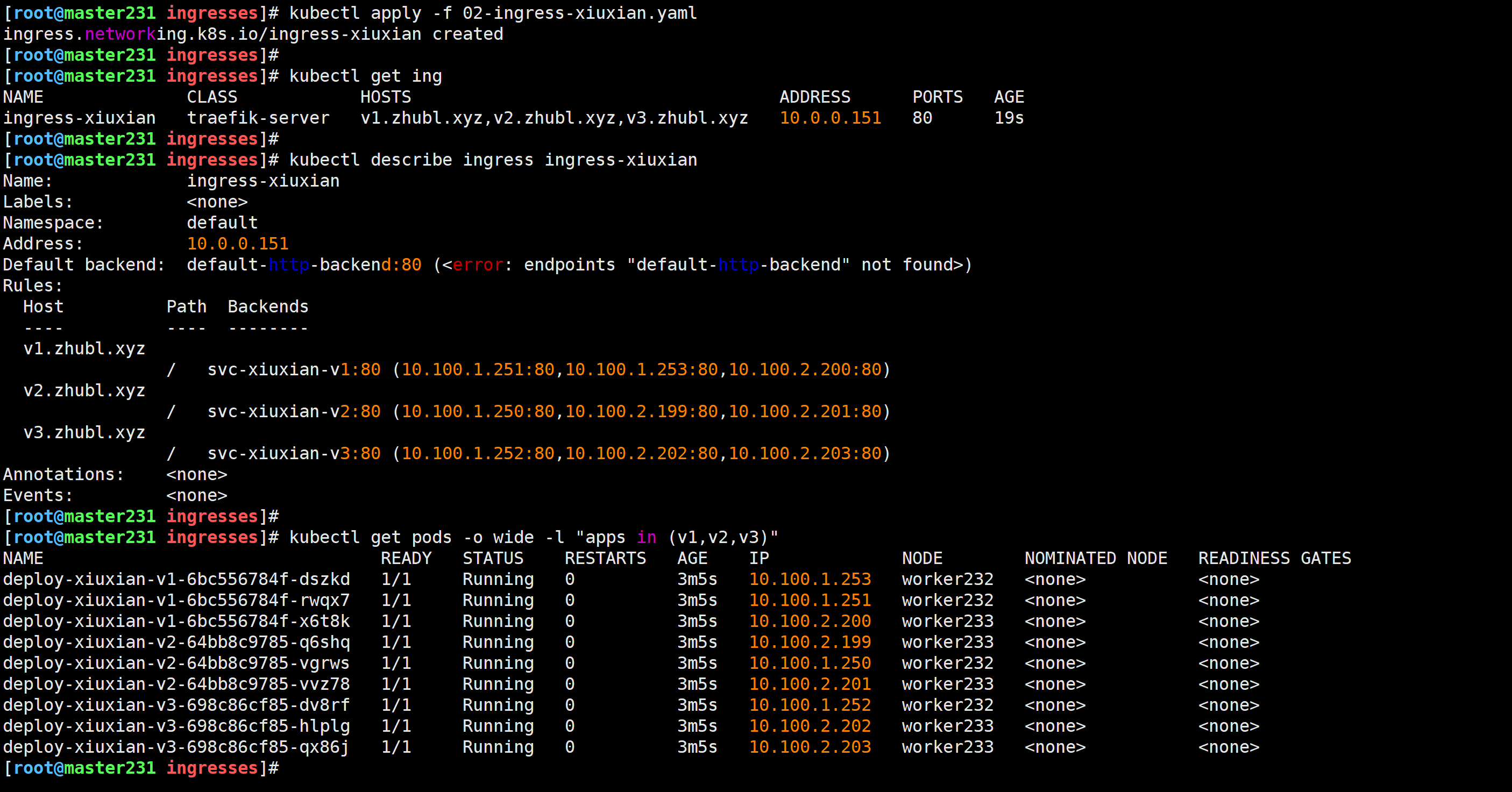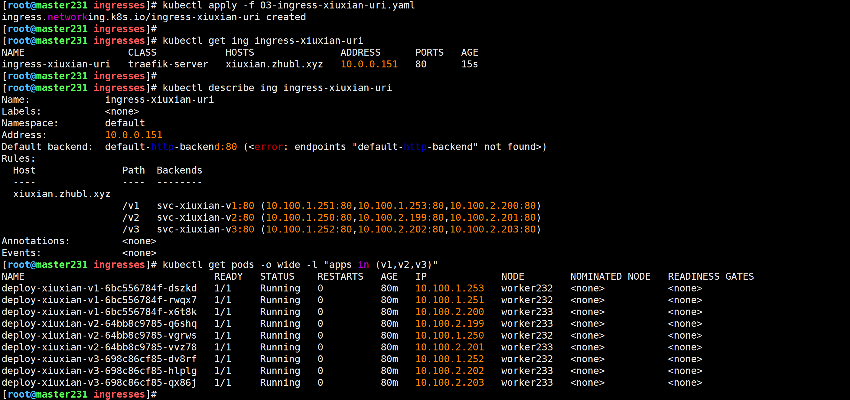 ingress.networking.k8s.io/ingress-xiuxian-uri created[root@master231 ingresses]# kubectl get ing ingress-xiuxian-uri[root@master231 ingresses]# kubectl describe ing ingress-xiuxian-uri