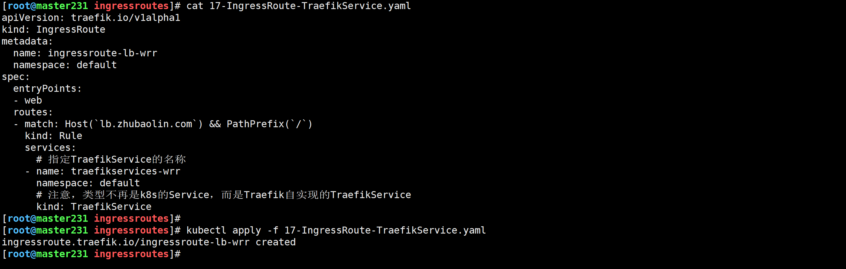 [root@master231 ingressroutes]# kubectl apply -f 17-IngressRoute-TraefikService.yaml