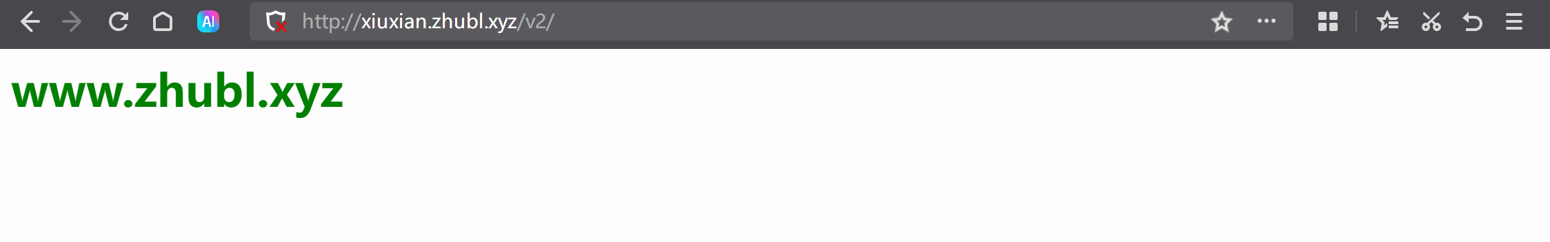 echo "<h1 style='color: green;'>www.zhubl.xyz</h1>" > /usr/share/nginx/html/v2/index.html