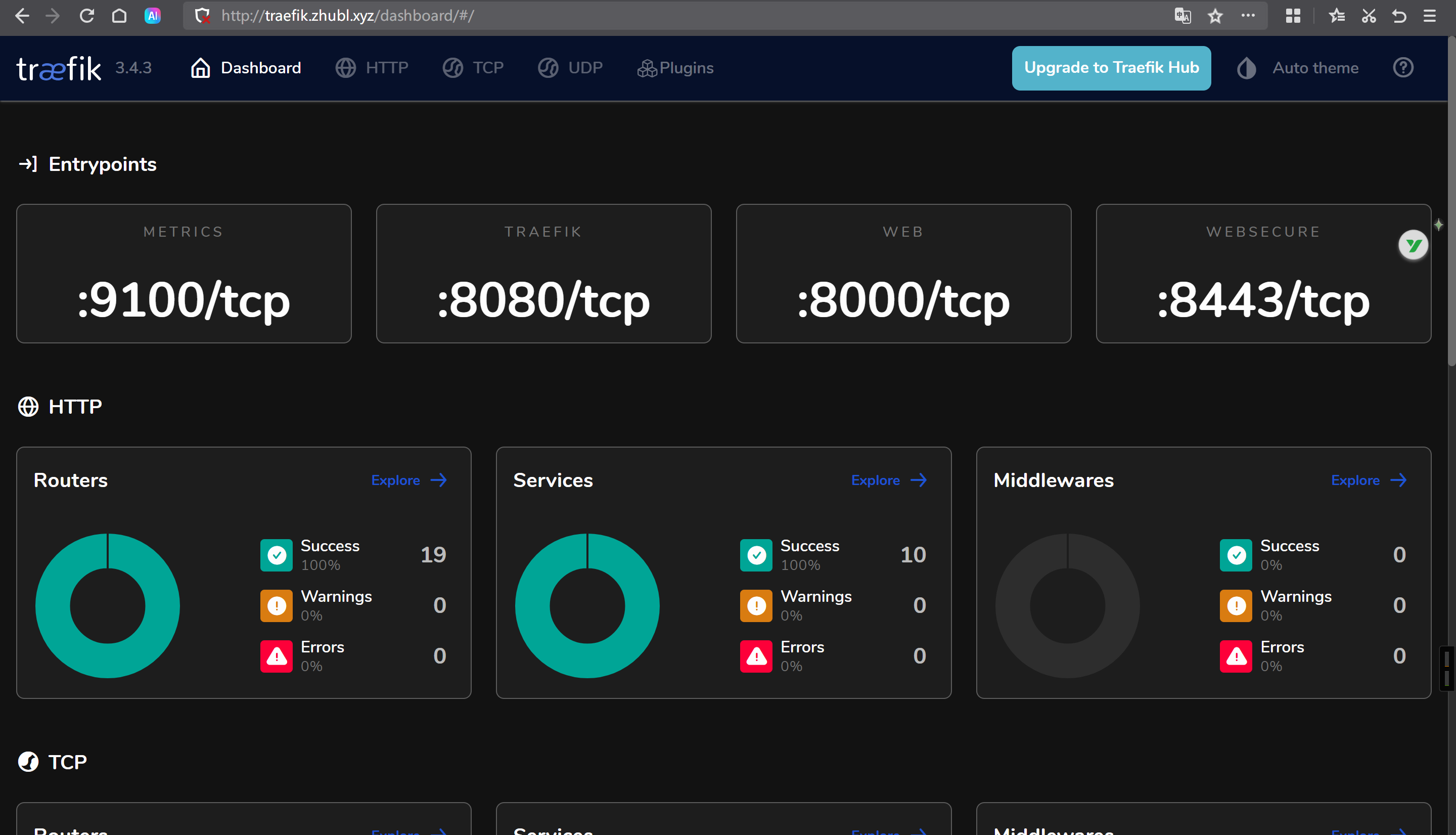 traefik-server LoadBalancer 10.200.91.121 10.0.0.151 8081:28893/UDP,80:30401/TCP,443:47626/TCP 39m