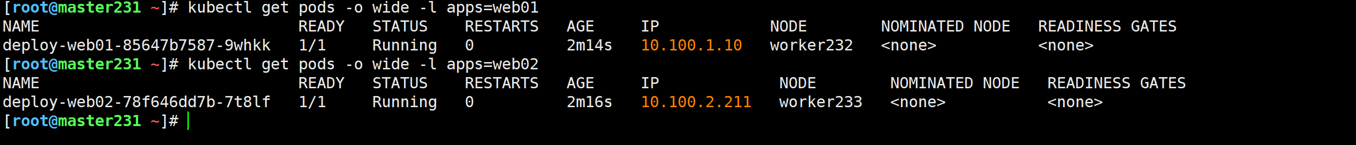 spec:replicas: 1selector:matchLabels:apps: web02template:metadata:labels:apps: web02spec:volumes:- emptyDir: {}name: data- name: webconfconfigMap:name: cm-lb-webitems:- key: web02path: default.confinitContainers:- name: i1image: registry.cn-hangzhou.aliyuncs.com/yinzhengjie-k8s/apps:v1env:- name: PODNAMEvalueFrom:fieldRef:fieldPath: metadata.name- name: PODNSvalueFrom:fieldRef:fieldPath: metadata.namespace- name: PODIPvalueFrom:fieldRef:fieldPath: status.podIPvolumeMounts:- name: datamountPath: /zhucommand: - /bin/sh- -c- 'echo "<h1> web02 NameSpace: ${PODNS}, PodName: ${PODNAME}, PodIP:${PODIP}</h1>" > /zhu/index.html'containers:- name: c1image: registry.cn-hangzhou.aliyuncs.com/yinzhengjie-k8s/apps:v1volumeMounts:- name: datamountPath: /usr/share/nginx/html- name: webconfmountPath: /etc/nginx/conf.d/default.confsubPath: default.conf---apiVersion: v1