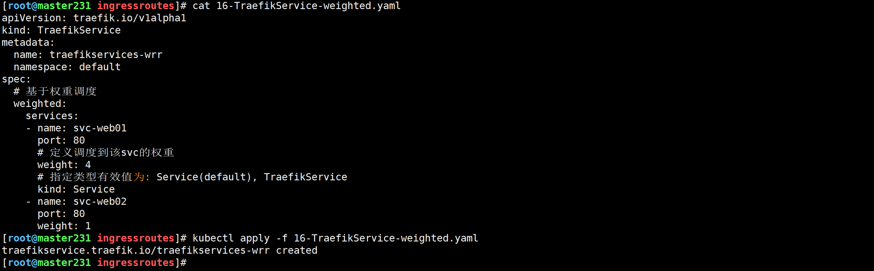 [root@master231 ingressroutes]# kubectl apply -f 16-TraefikService-weighted.yaml