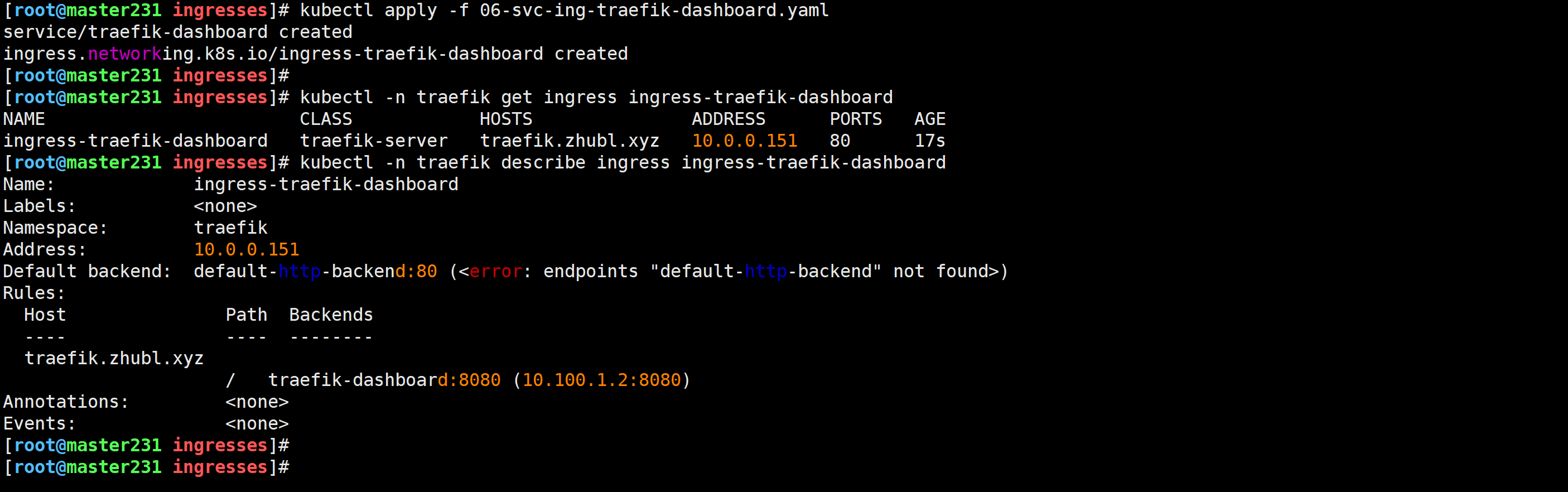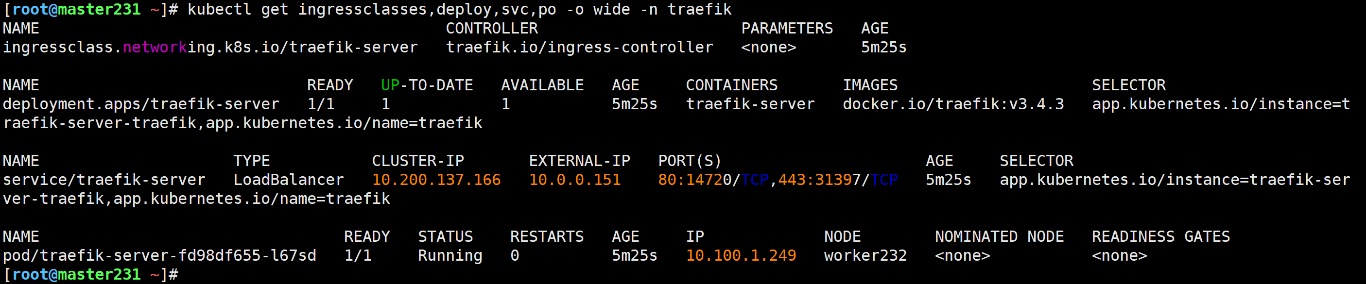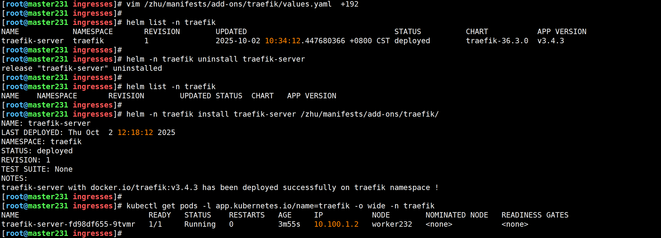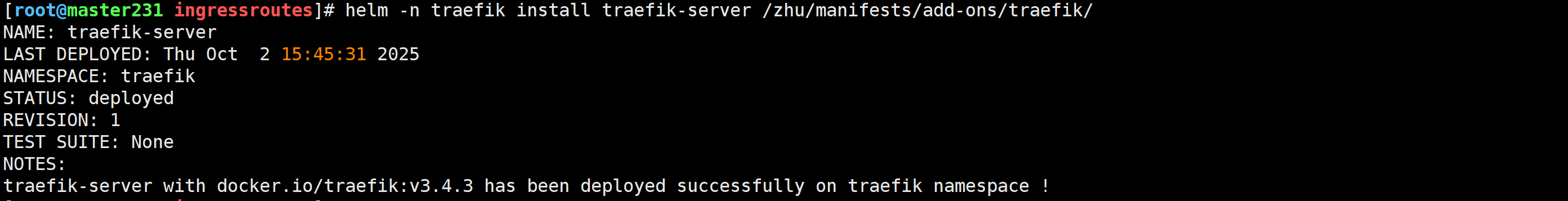 [root@master231 ~]# helm install traefik-server /zhu/manifests/add-ons/traefik/ -n traefik --create-namespace