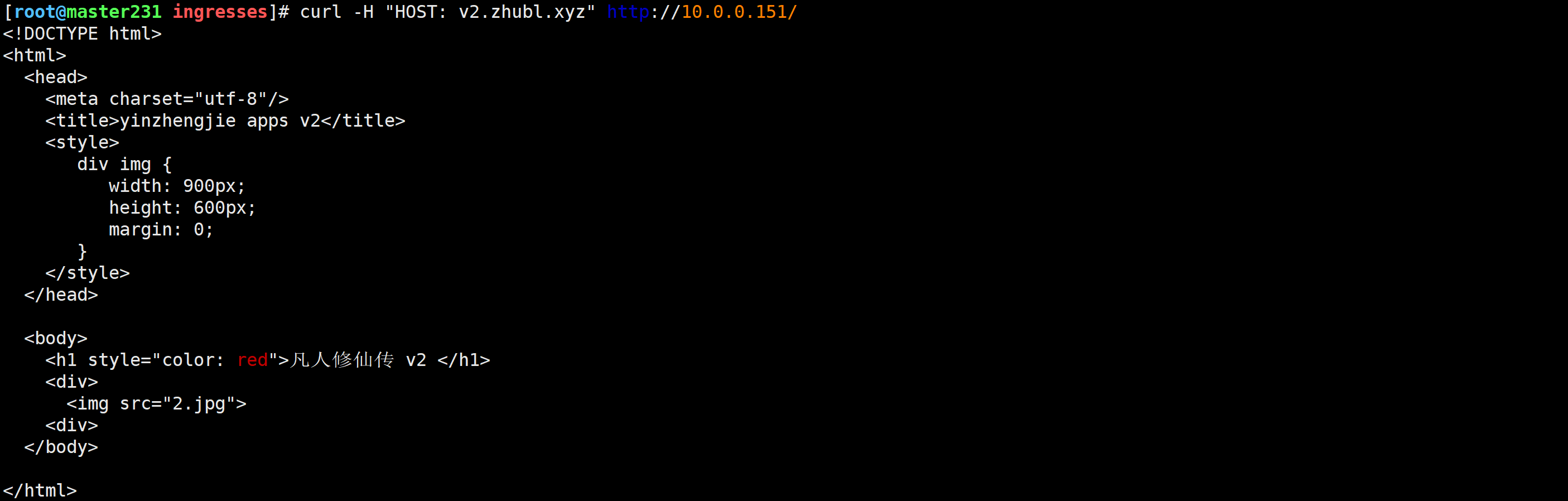 [root@master231 ingresses]# curl -H "HOST: v2.zhubl.xyz" http://10.0.0.151/