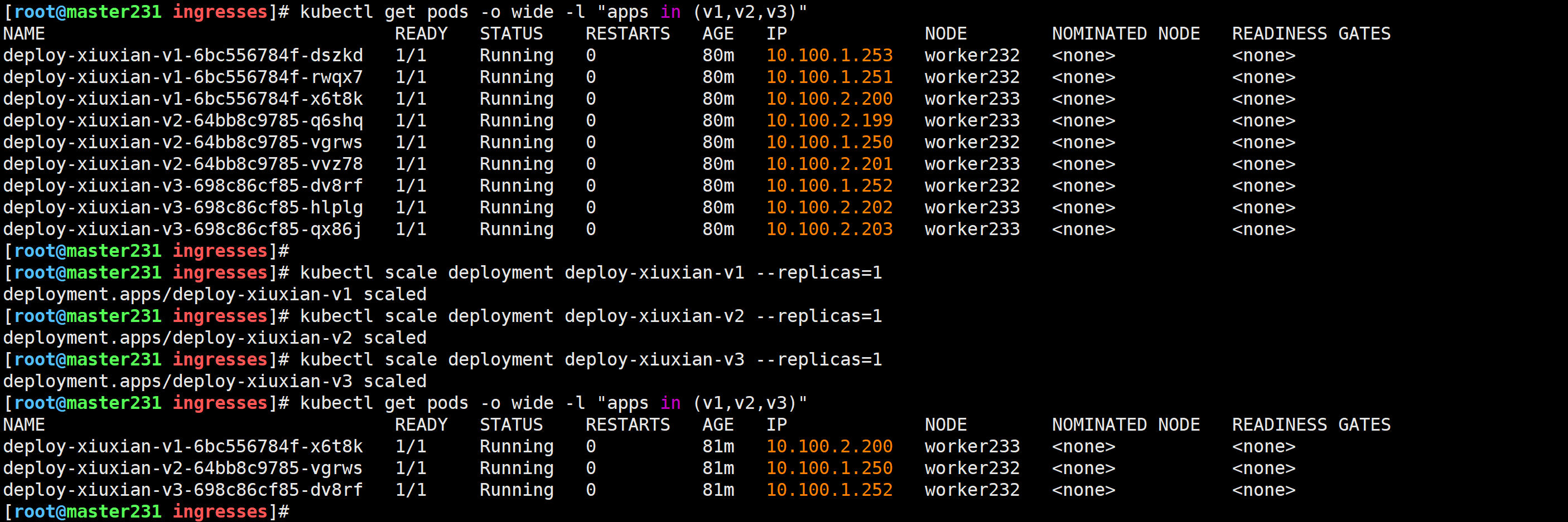 [root@master231 ingresses]# kubectl scale deployment deploy-xiuxian-v3 --replicas=1