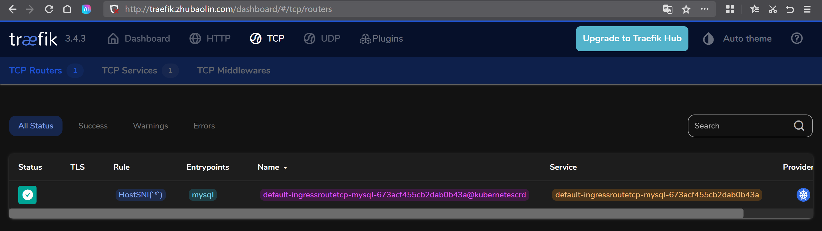 spec:entryPoints:- webroutes:- match: Host(`lb.zhubaolin.com`) && PathPrefix(`/`)kind: Ruleservices:- name: traefikservices-mirroringnamespace: defaultkind: TraefikService