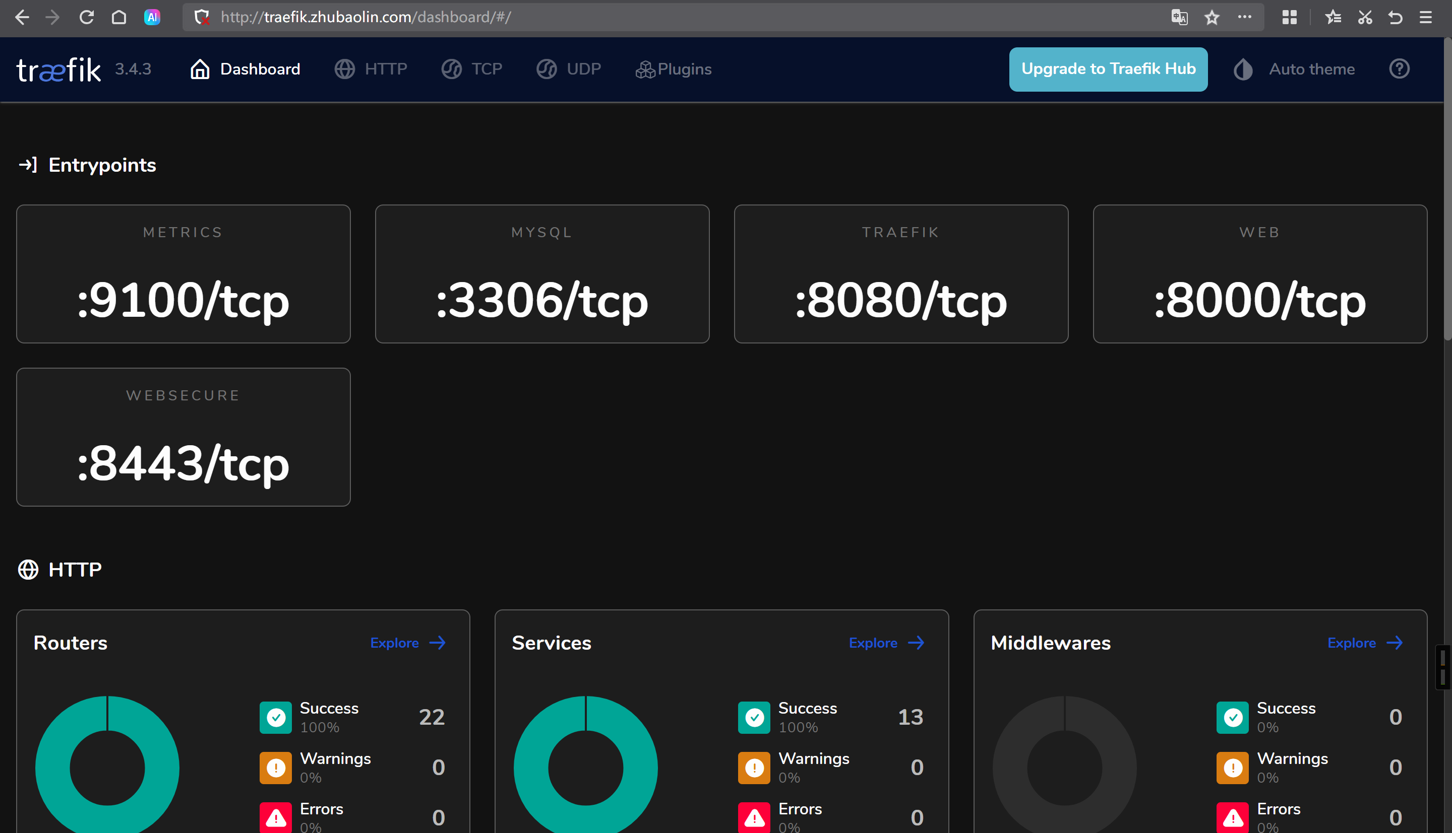 spec:entryPoints:- webroutes:- match: Host(`lb.zhubaolin.com`) && PathPrefix(`/`)kind: Ruleservices:# 指定TraefikService的名称- name: traefikservices-wrrnamespace: default# 注意,类型不再是k8s的Service,而是Traefik自实现的TraefikServicekind: TraefikService