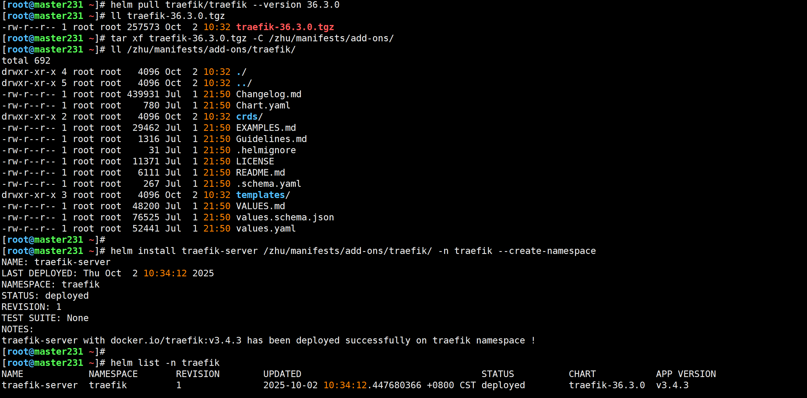 [root@master231 ~]# tar xf traefik-36.3.0.tgz -C /zhu/manifests/add-ons/