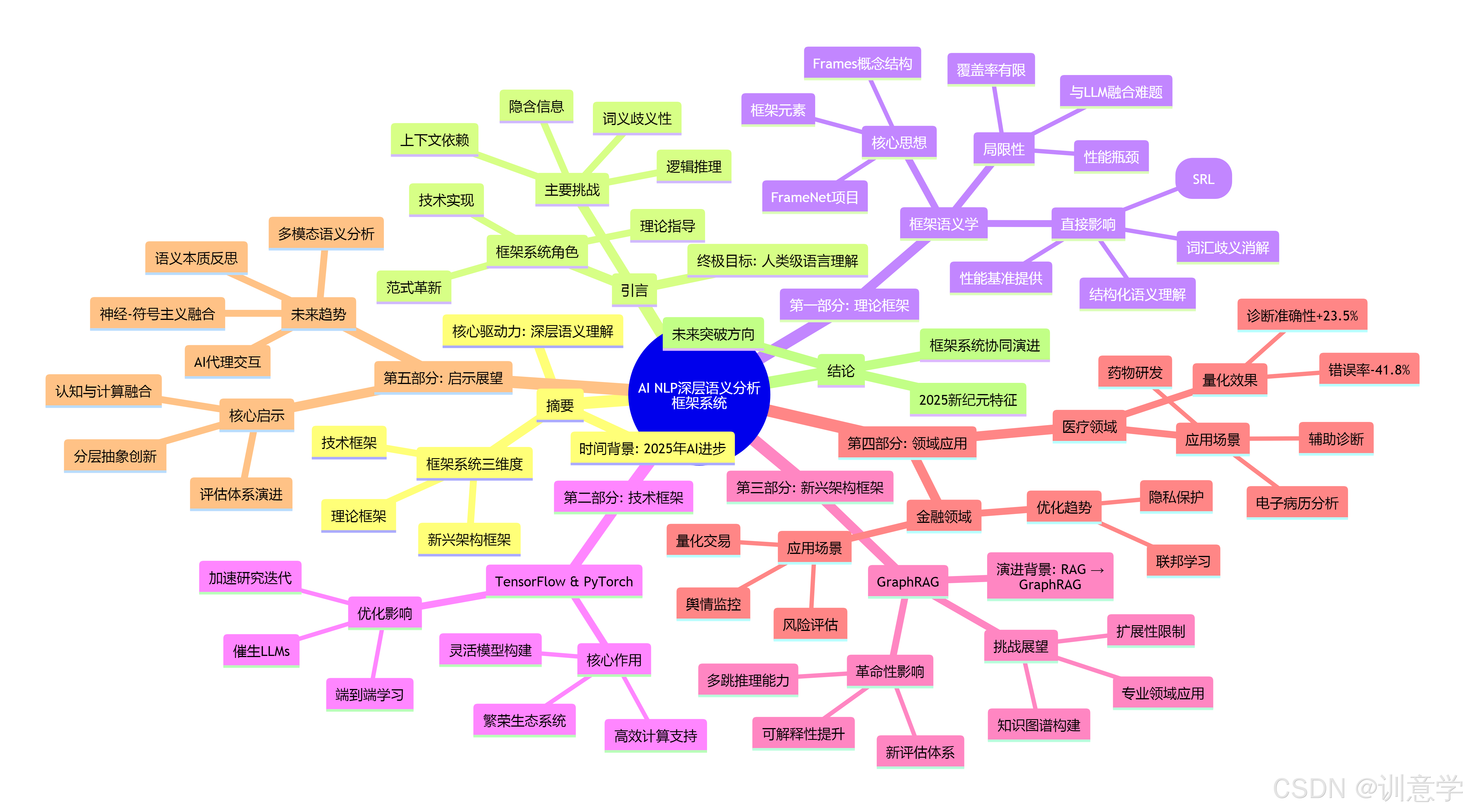 进入2025年,人工智能(AI)在自然语言处理(NLP)领域取得了长足的进步,其核心驱动力之一在于对语言“深层语义”的理解能力不断增强。深层语义分析旨在超越词汇和语法的表层结构,探究文本背后复杂的意义、关系、意图和上下文。本报告深入探讨了“框架系统”(Framework)在推动这一进程中扮演的多维角色。报告将“框架系统”解构为三个层面:指导语义表示的理论框架(如框架语义学)、支撑模型实现的技术框架(如深度学习框架)以及革新分析范式的新兴架构框架(如GraphRAG)。通过分析这些框架系统的具体影响、性能表现、应用案例及其内在局限,本报告旨在揭示它们对深层语义分析的深刻影响,并对未来的发展趋势提供前瞻性启示。